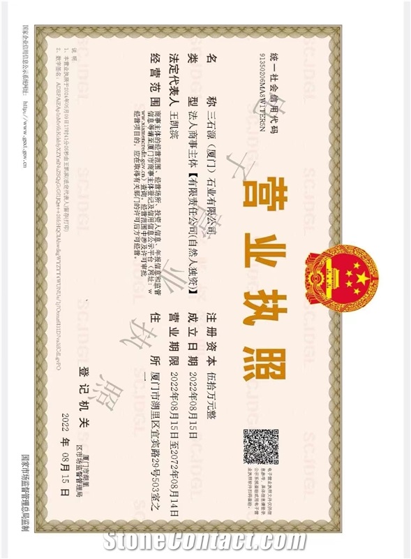 The supplier's company certificate has been verified by StoneContact.Com.